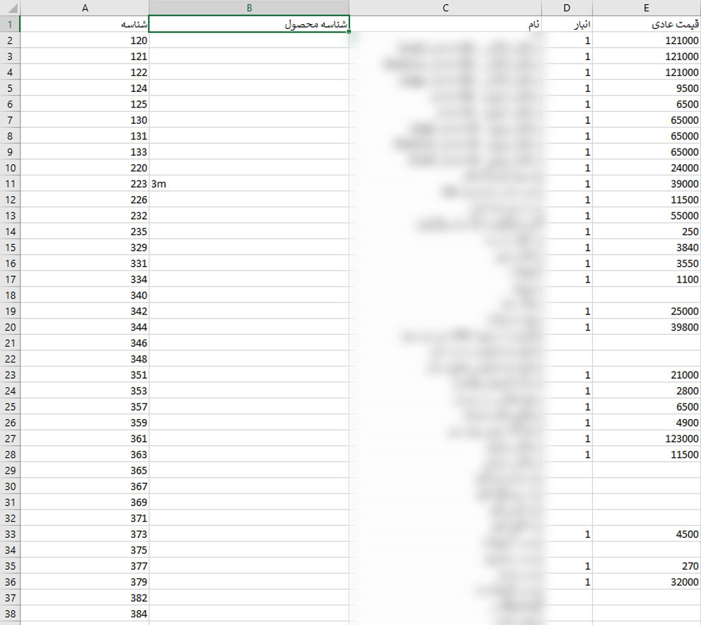 فایل اکسل دانلود شده را باز کنید، موجودی و قیمت ها را بروزرسانی کنید.